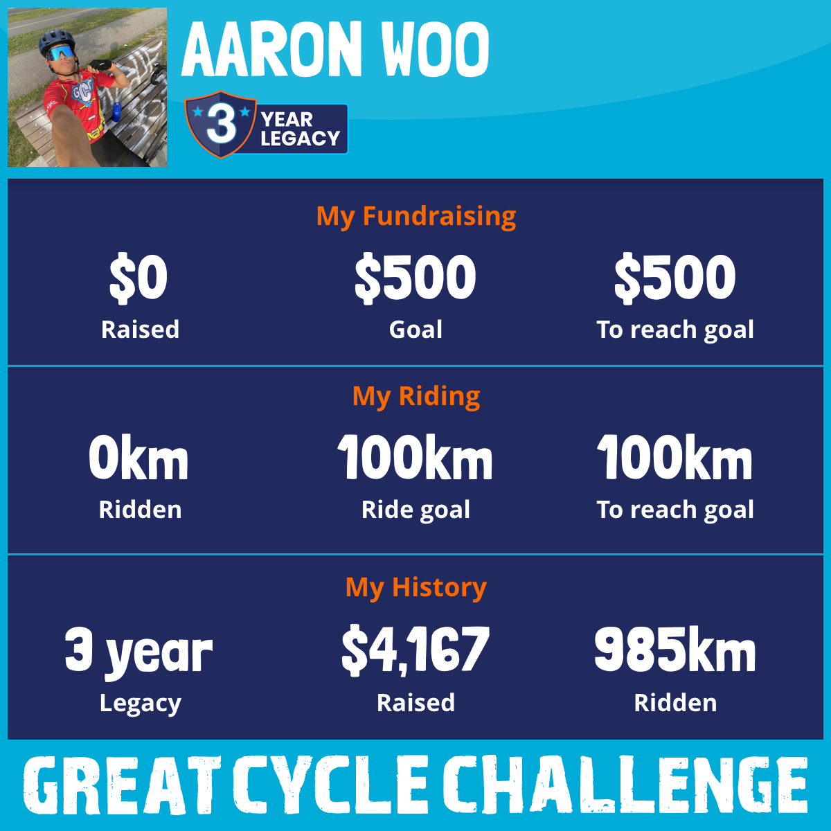 I am riding 100 km in memory of Walter & Edmond Woo. Please sponsor me and support my challenge to fight kids' cancer and save little lives.