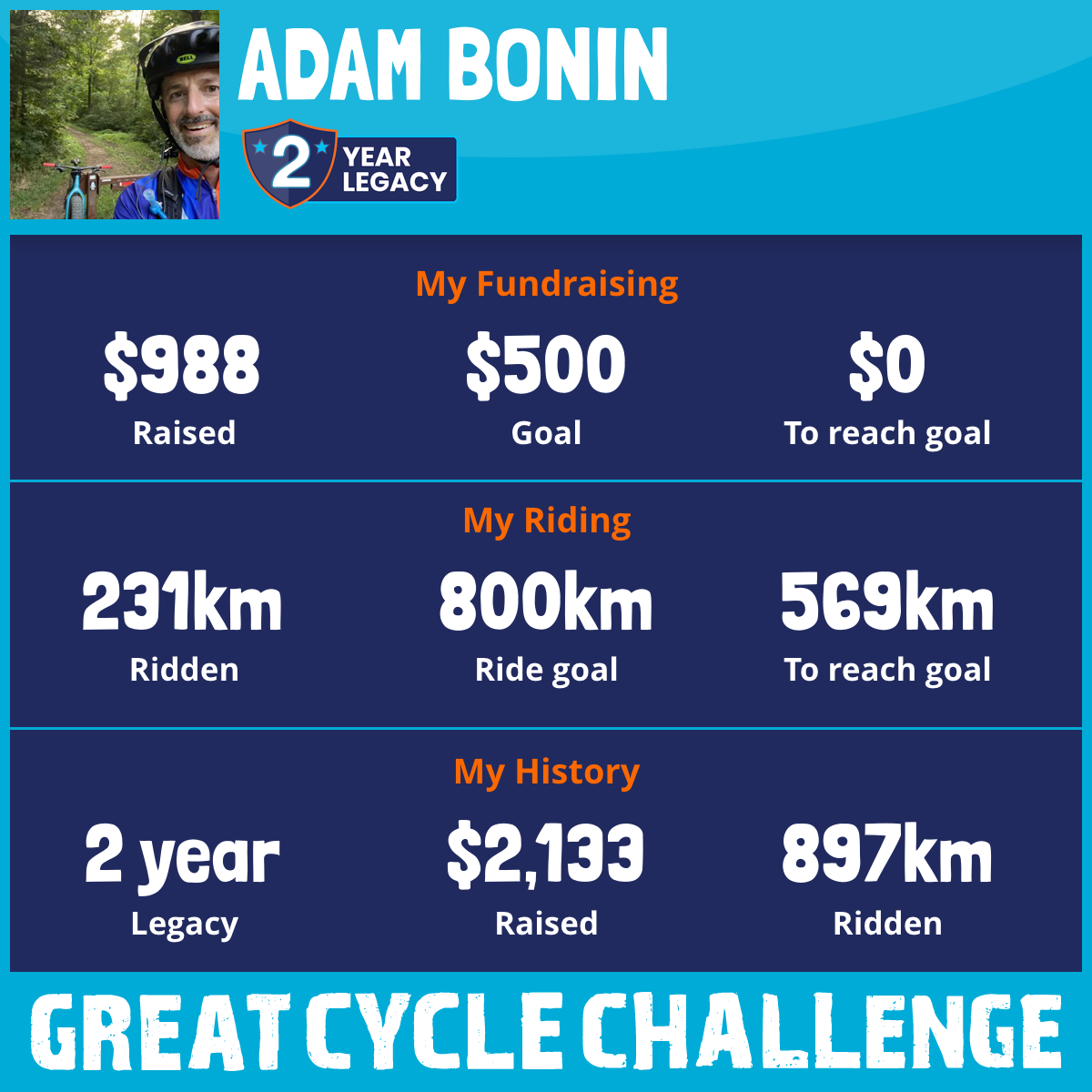 870 km Ridden$1,351 Raised2026