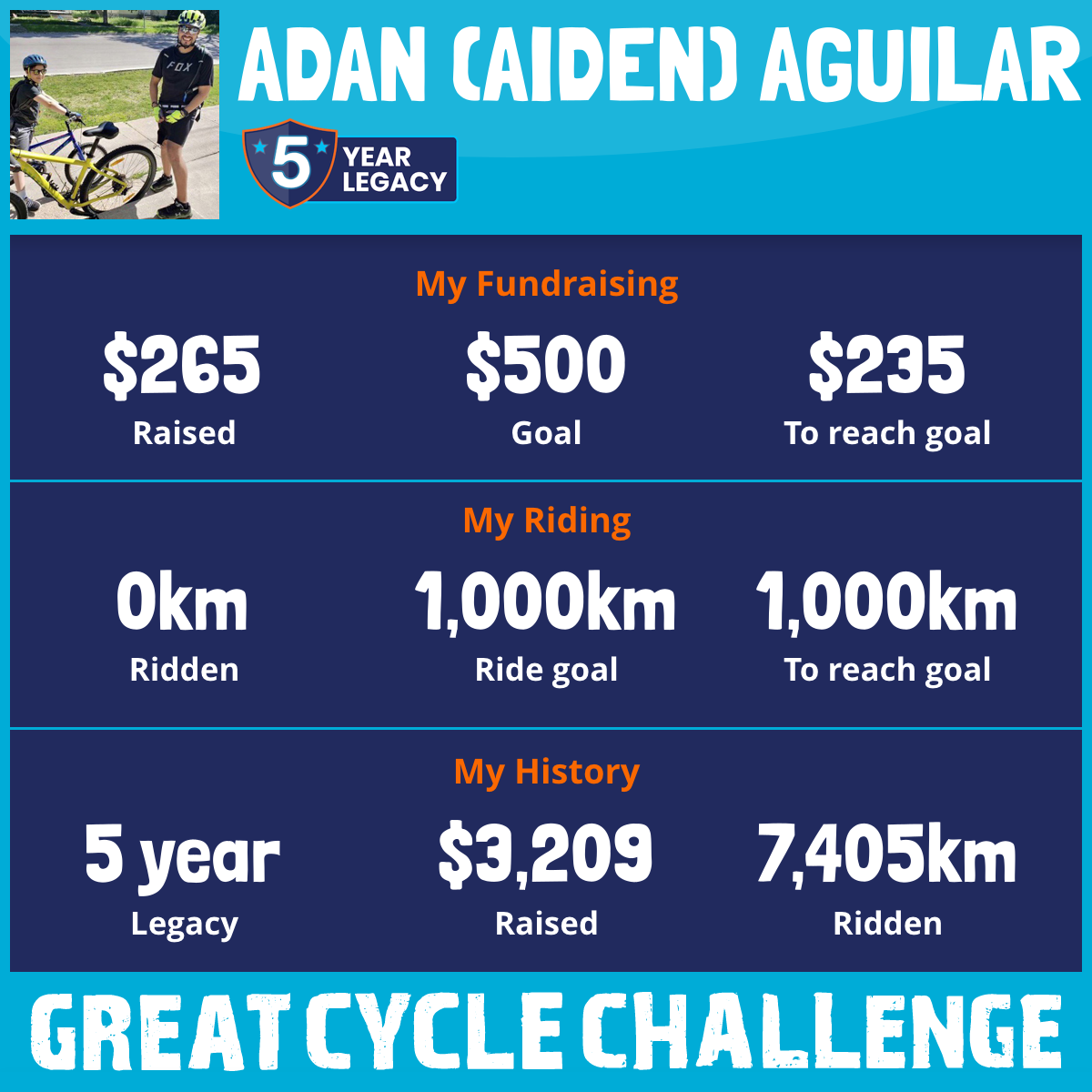 2,170 km Ridden$1,845 Raised2024