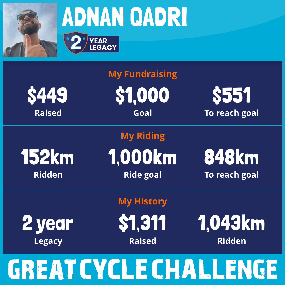 231 km Ridden$449 Raised2026