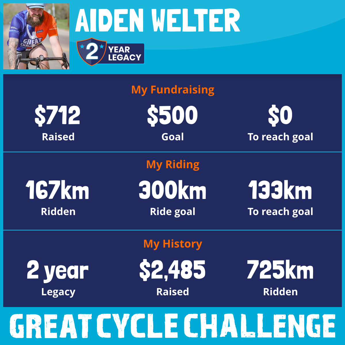 330 km Ridden$1,063 Raised2026