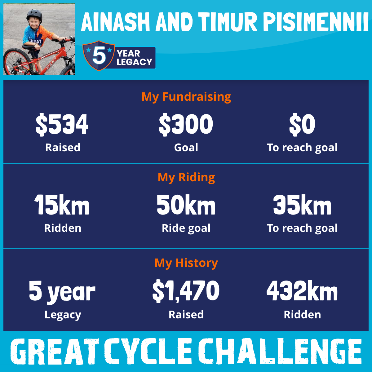 This August, Timur and I are taking part in the Great Cycle Challenge to fight kids' cancer!