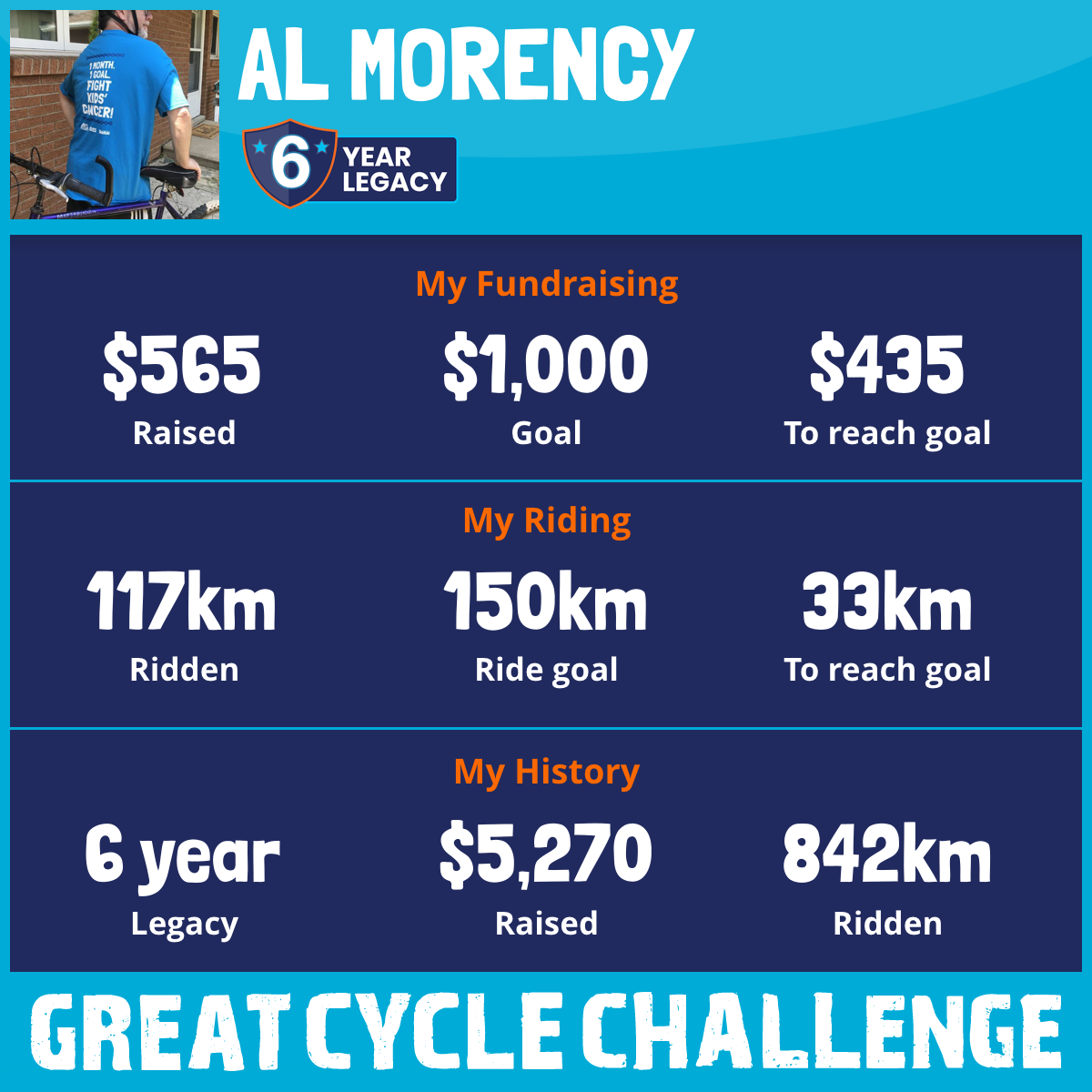 25 Aug 2025I’ll finish the riding goal within the next couple days. Maybe some extra. The fundraising goal is short but I’ve put the word out the best I can. Everything we have done is help for families affected by childhood cancer. I’m thankful for all my sponsors.