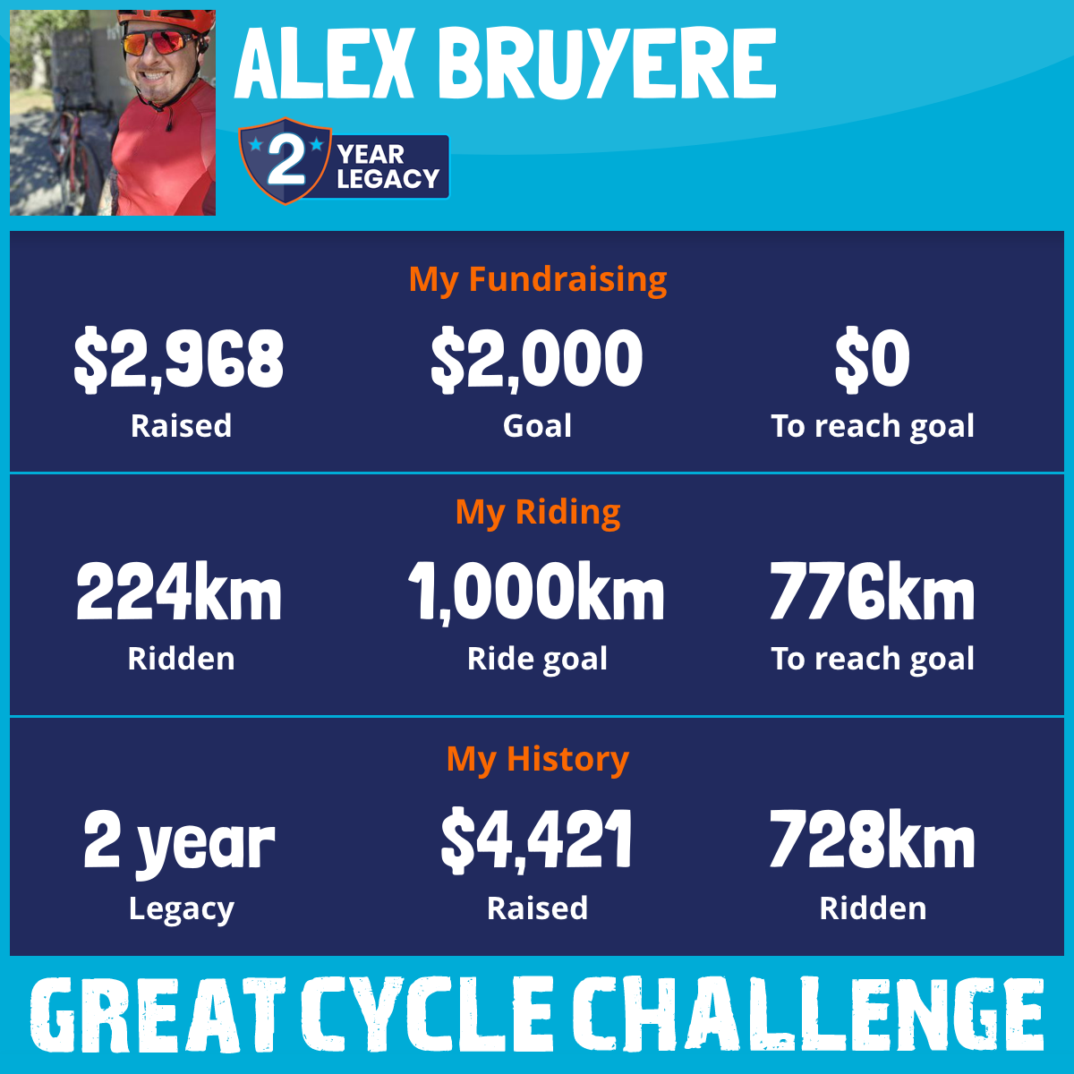 555 km Ridden$3,004 Raised2026