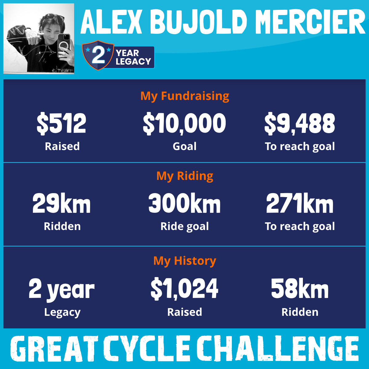 29 km Ridden$512 Raised2026