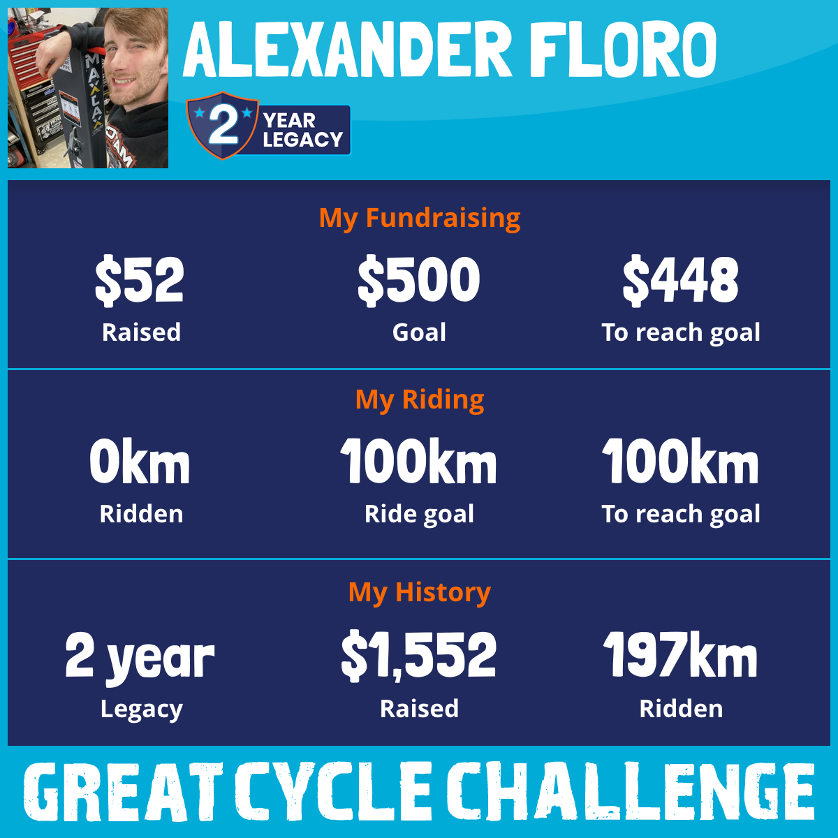 197 km Ridden$1,500 Raised2025