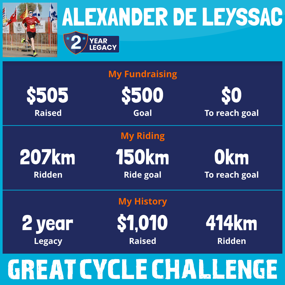207 km Ridden$505 Raised2026
