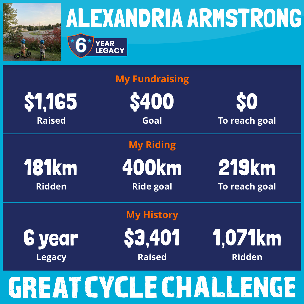 404 km Ridden$1,165 Raised2025