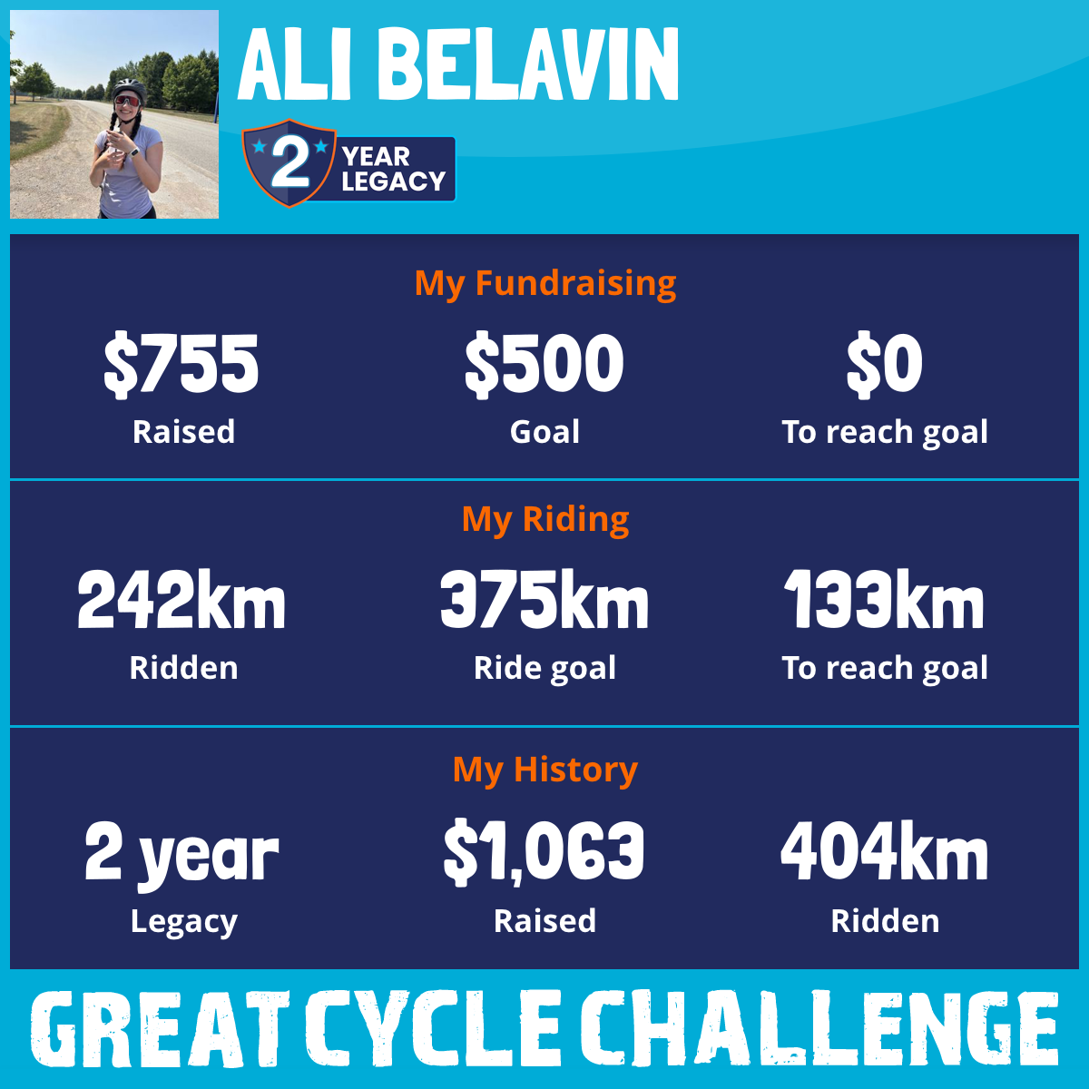 1,143 km Ridden$755 Raised2026