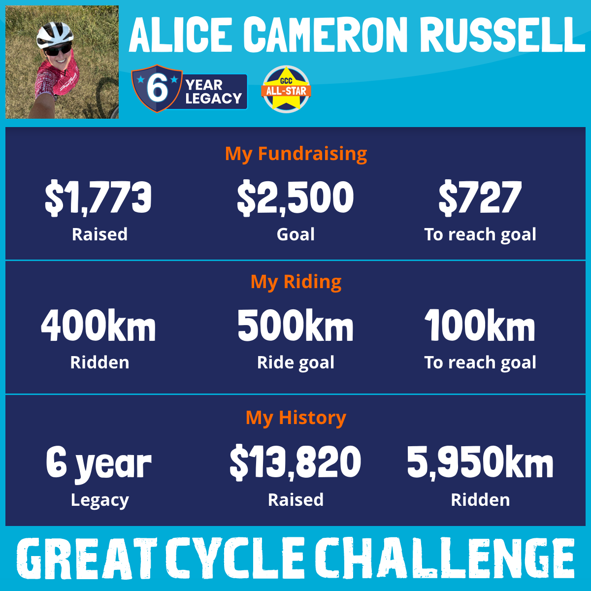 950 km Ridden$1,383 Raised2022