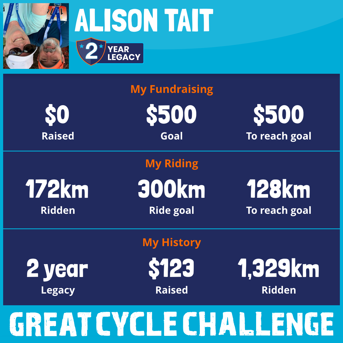 1,158 km Ridden$123 Raised2024