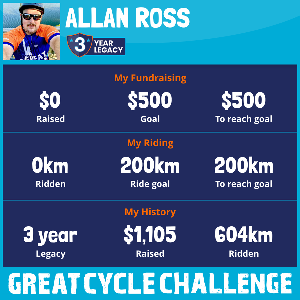 604 km Ridden$1,105 Raised2023