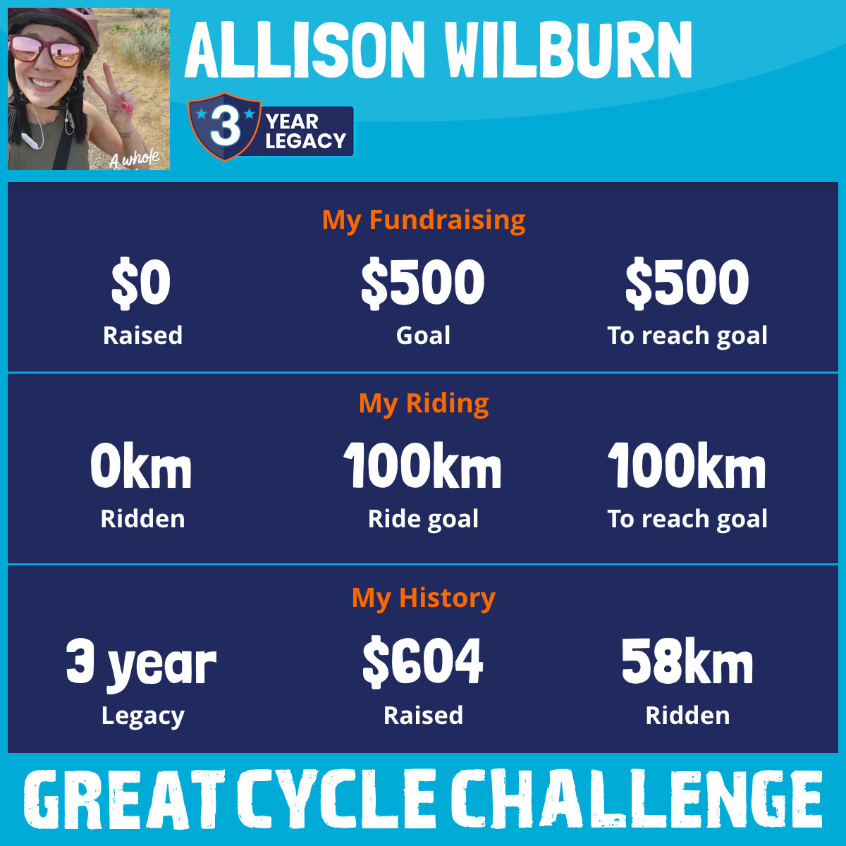 58 km Ridden$604 Raised2023