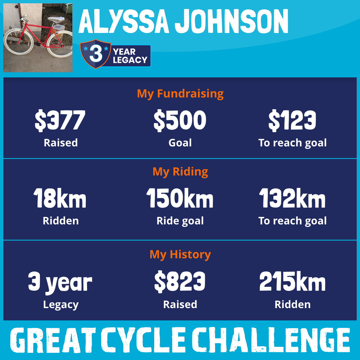 This August, I am taking part in the Great Cycle Challenge to fight kids' cancer!