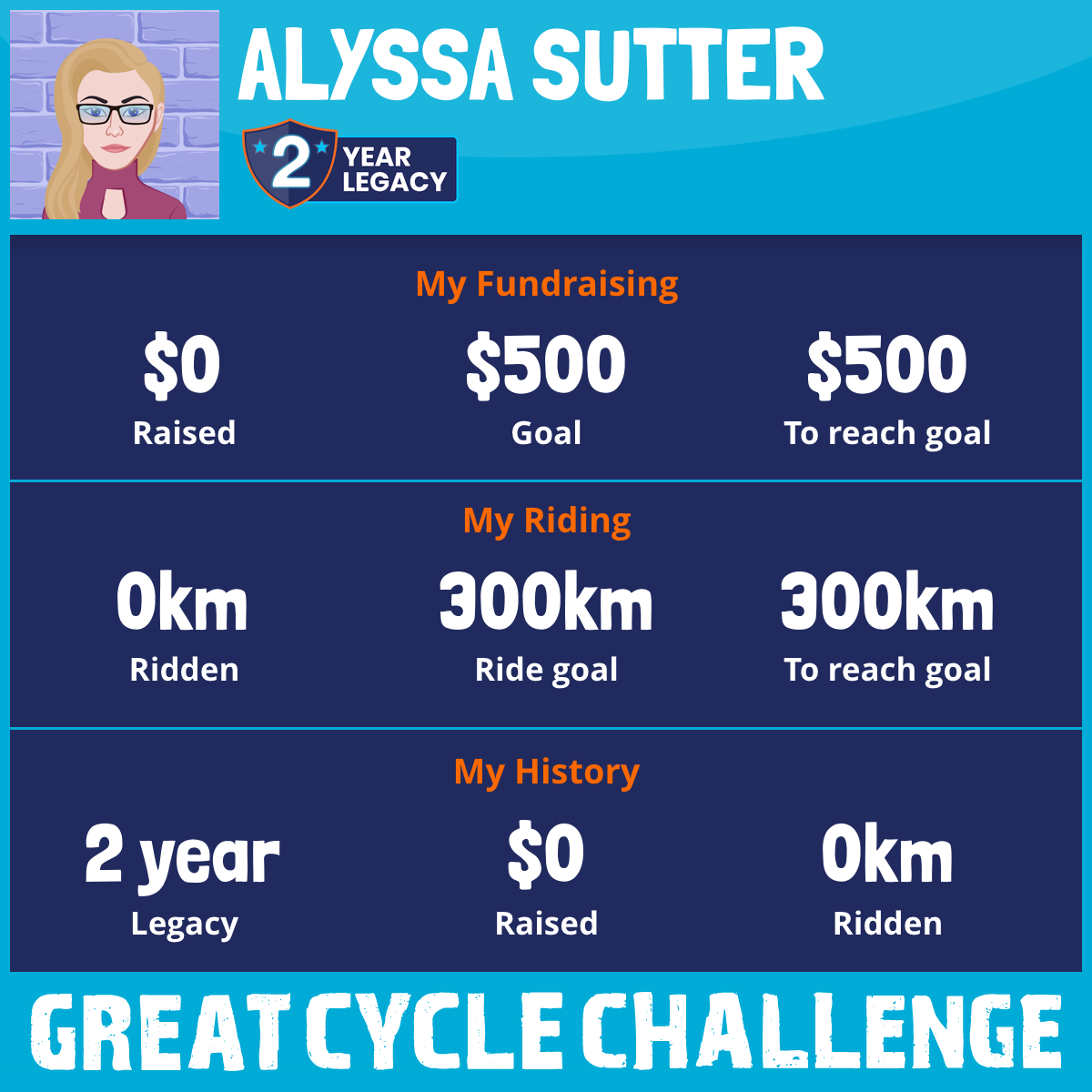 I've raised $0 My goal is $500 Donate Now
