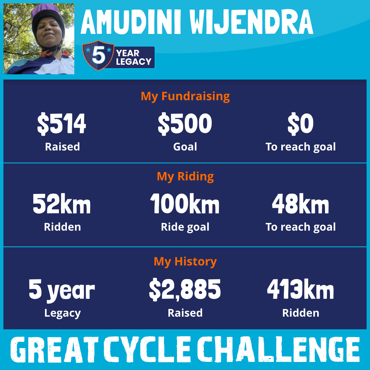 123 km Ridden$514 Raised2025