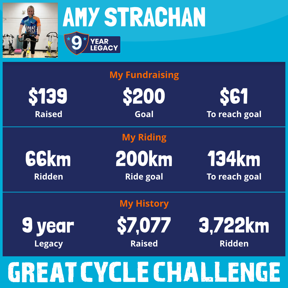 This August, I am taking part in my 9th year in the Great Cycle Challenge to fight kids' cancer! In total, I've rasied $6,938.41 and ridden 3,655.6 km since my first challenge in 2017.