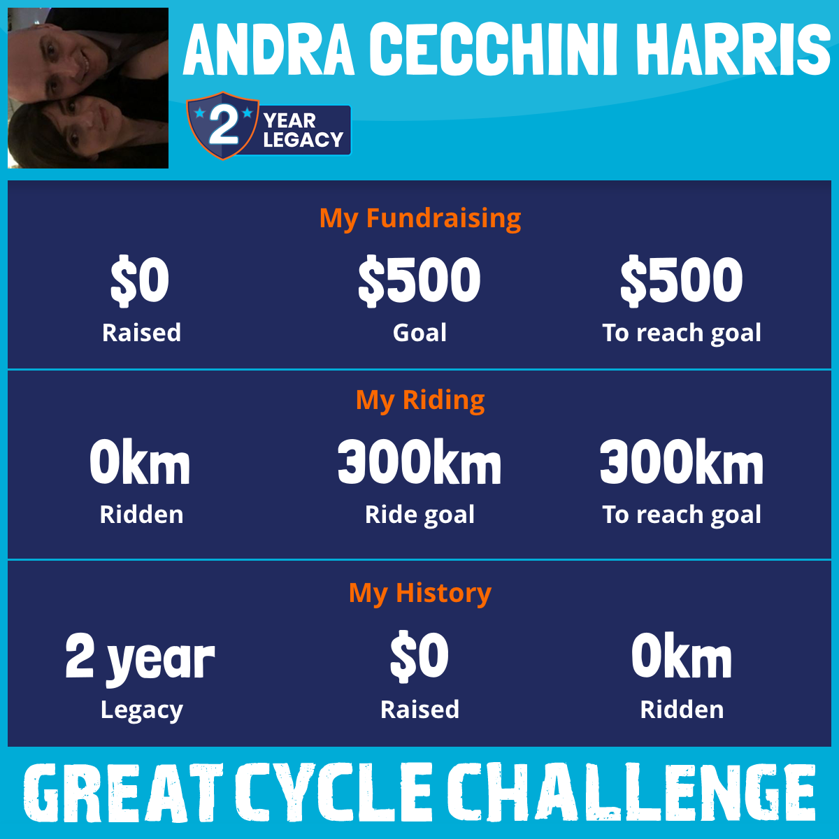 I've raised $0 My goal is $500 Donate Now