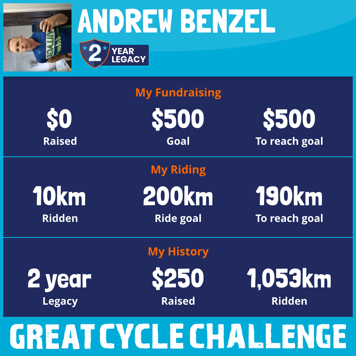 1,043 km Ridden$250 Raised2021