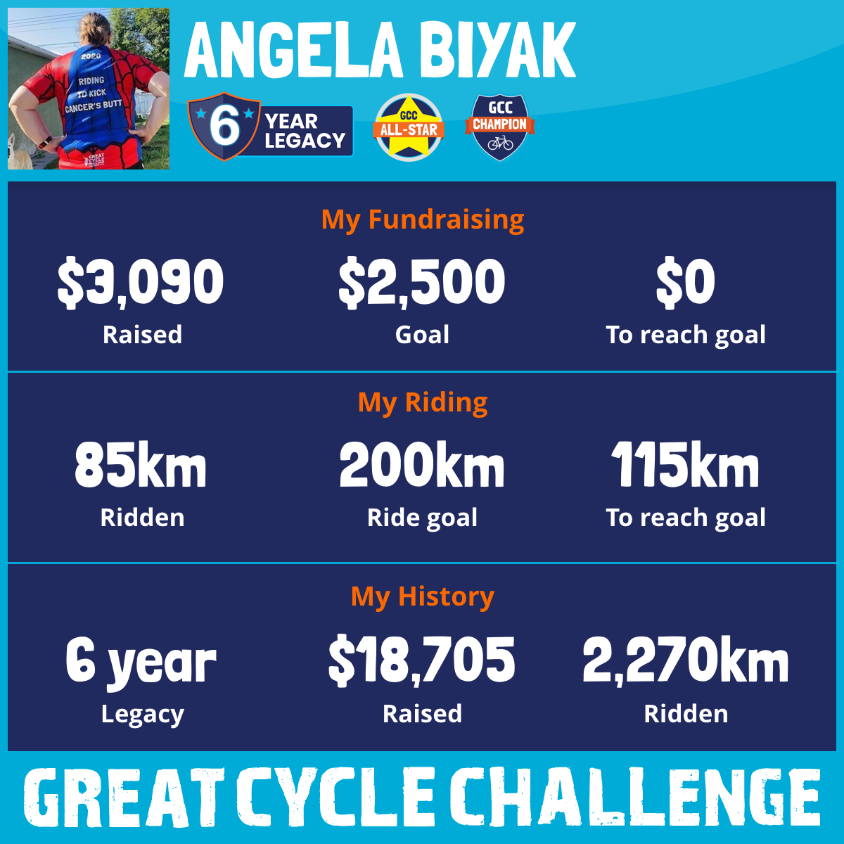 This August, I am taking part in the Great Cycle Challenge to fight kids' cancer! This will be my 6th year participating.