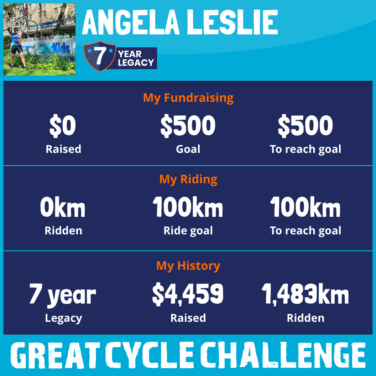 So I am raising funds through my challenge to help these kids and support SickKids Foundation to allow them to continue their work in developing treatments and finding a cure for childhood cancer.