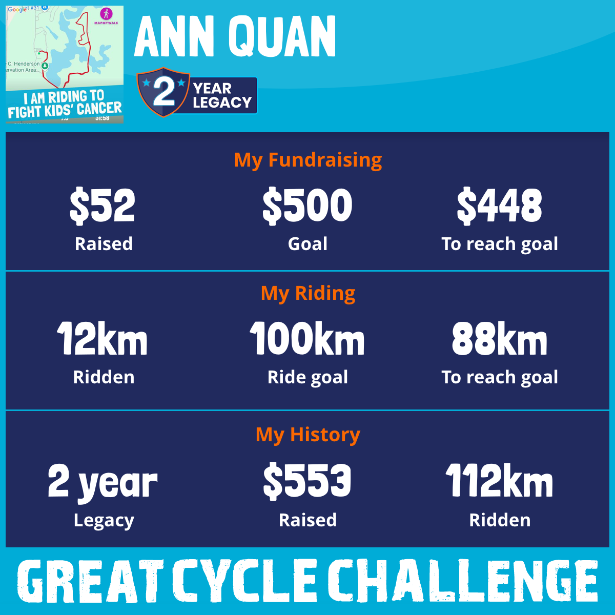 My family had been blessed but others haven't so I am riding 100 km to fight kids' cancer and save little lives. Please sponsor me to support my challenge!