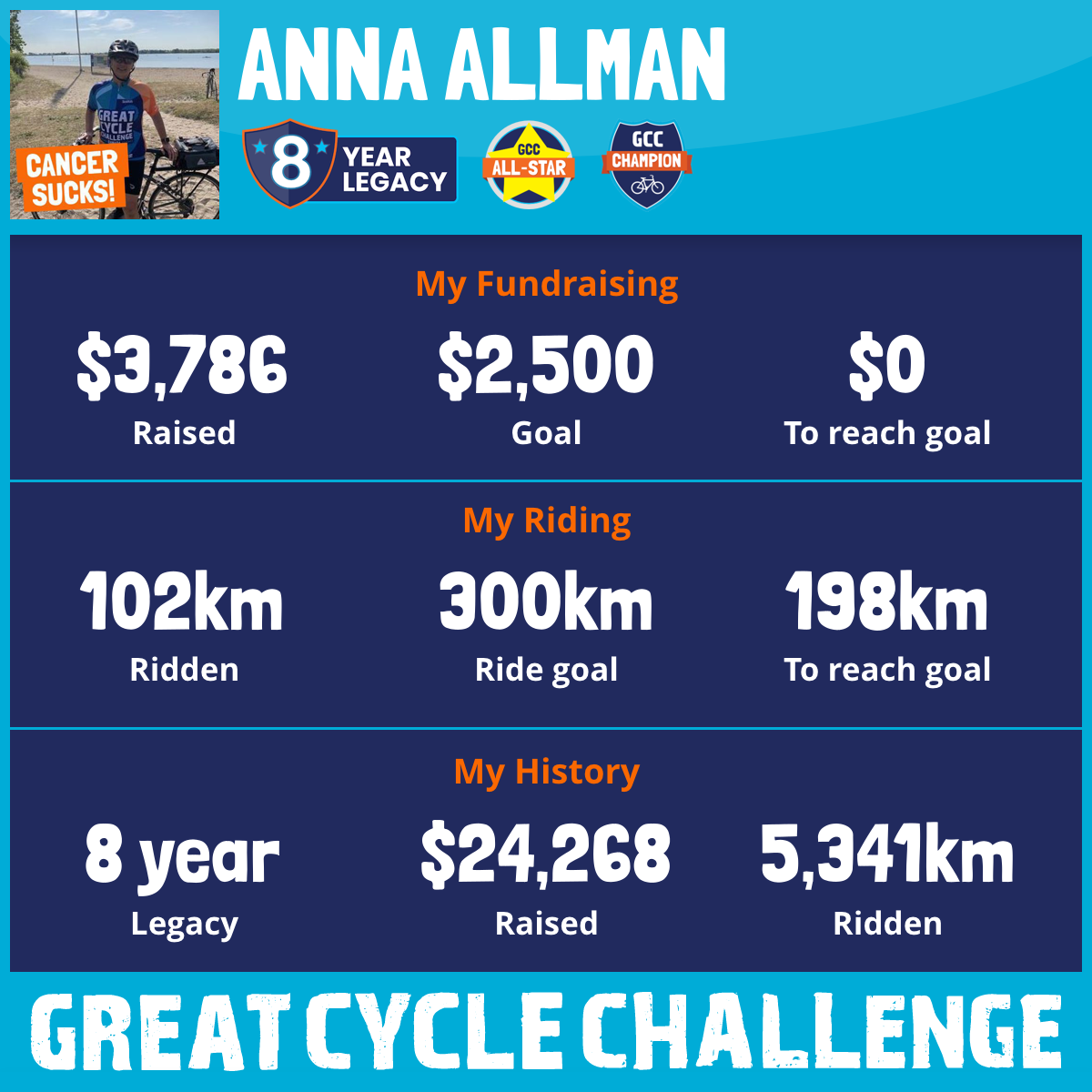 822 km Ridden$5,184 Raised2023