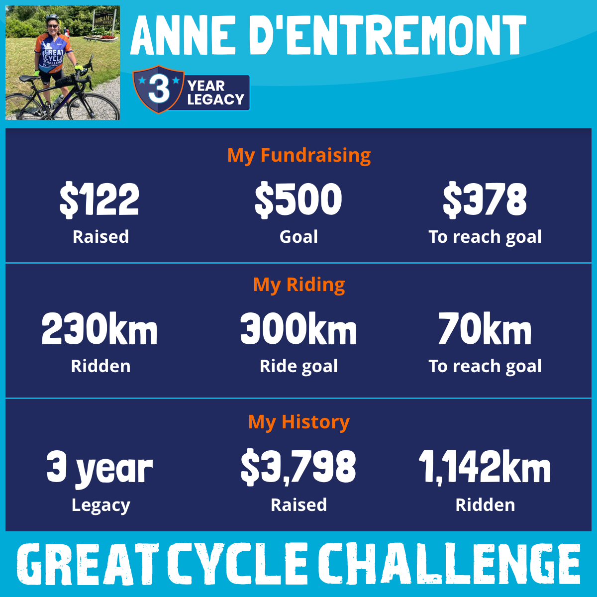 376 km Ridden$2,064 Raised2023
