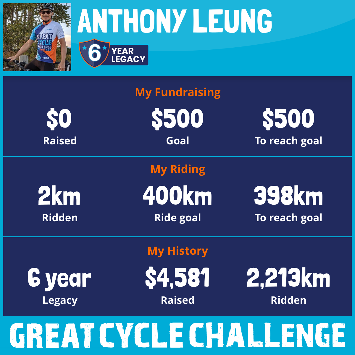 This August will be my 3rd year participating in the Great Cycle Challenge to fight kids' cancer!