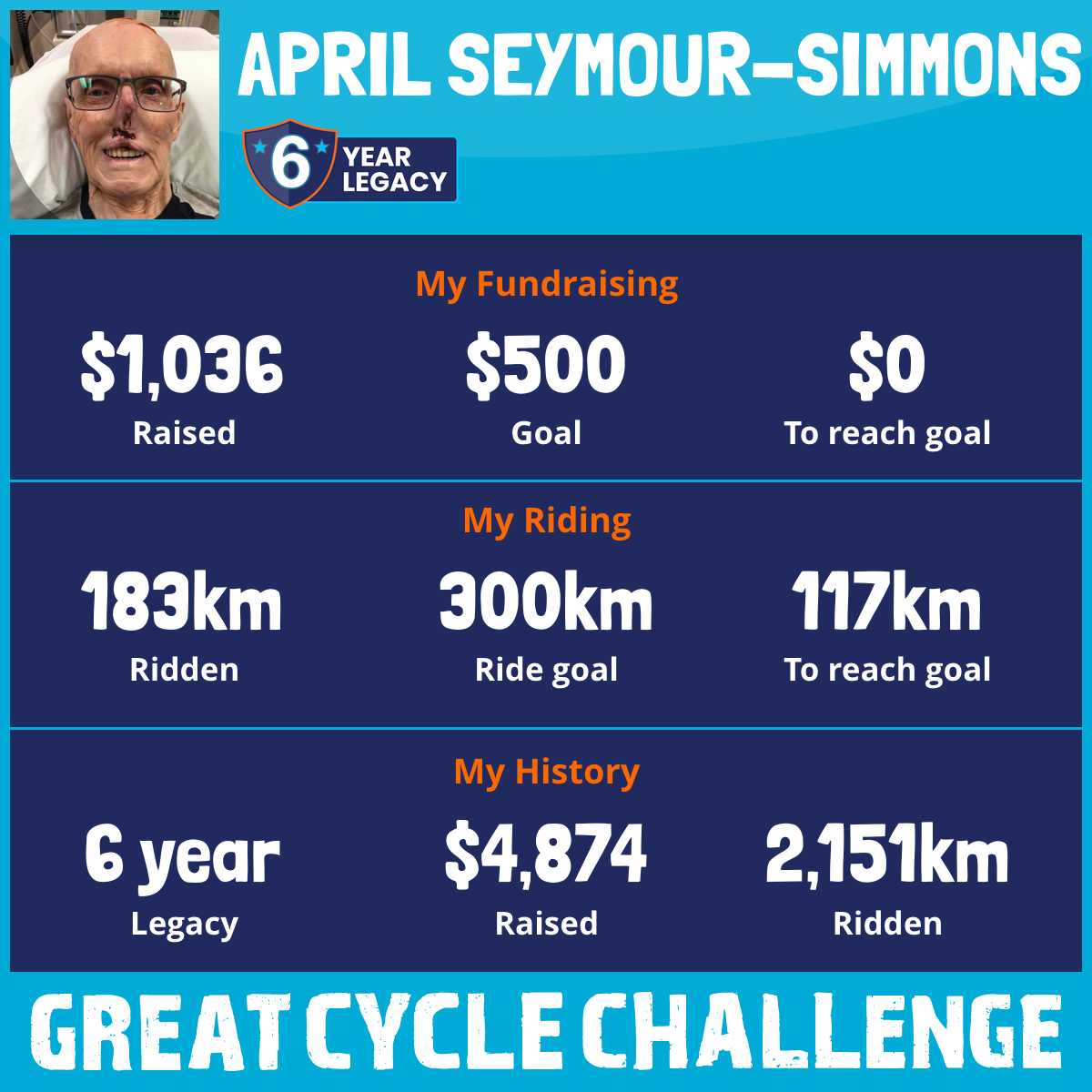 I am riding 300 km in memory of my dad, Ronald Stanley Seymour. Please sponsor me and support my challenge to fight kids' cancer and save little lives.