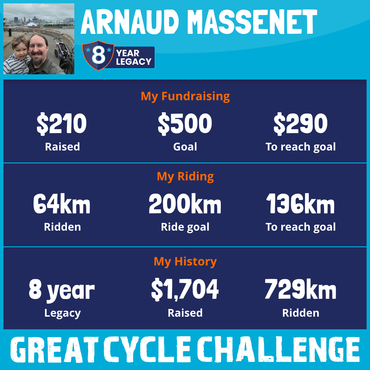I am riding 200 km for Bruno. Please sponsor me and support my challenge to fight kids' cancer and save little lives.