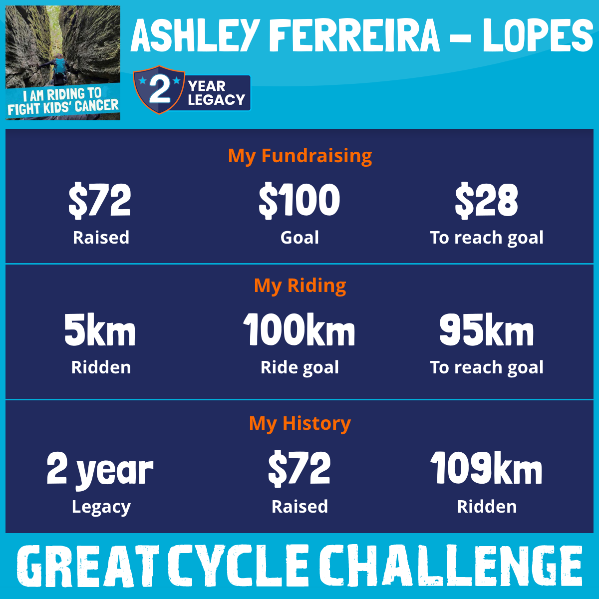 This August, I am taking part in the Great Cycle Challenge to fight kids' cancer!