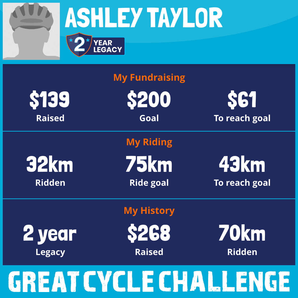 38 km Ridden$129 Raised2023