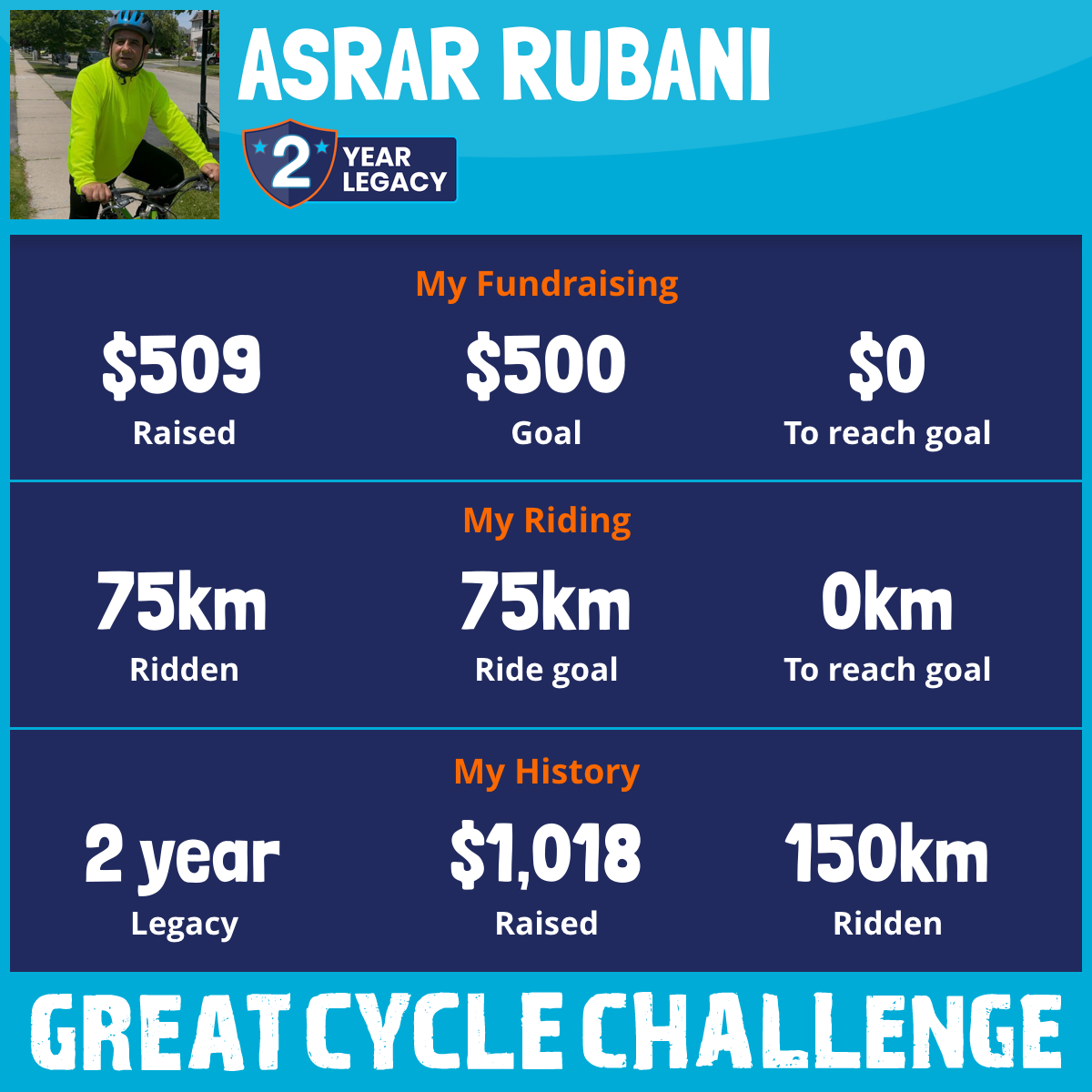 75 km Ridden$509 Raised2026
