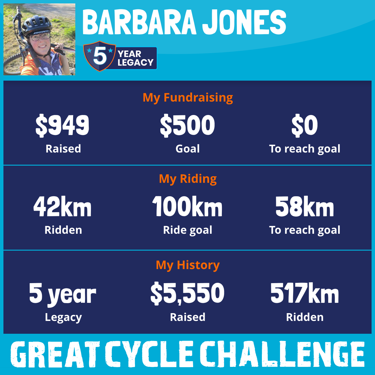 96 km Ridden$1,122 Raised2023