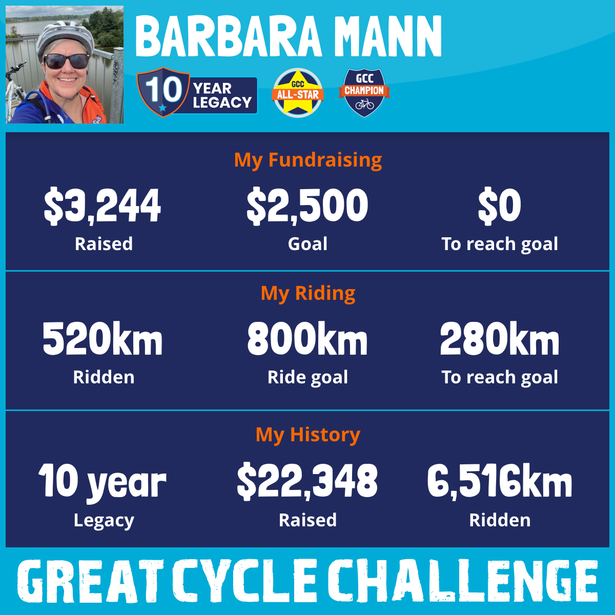 1,000 km Ridden$3,161 Raised2024