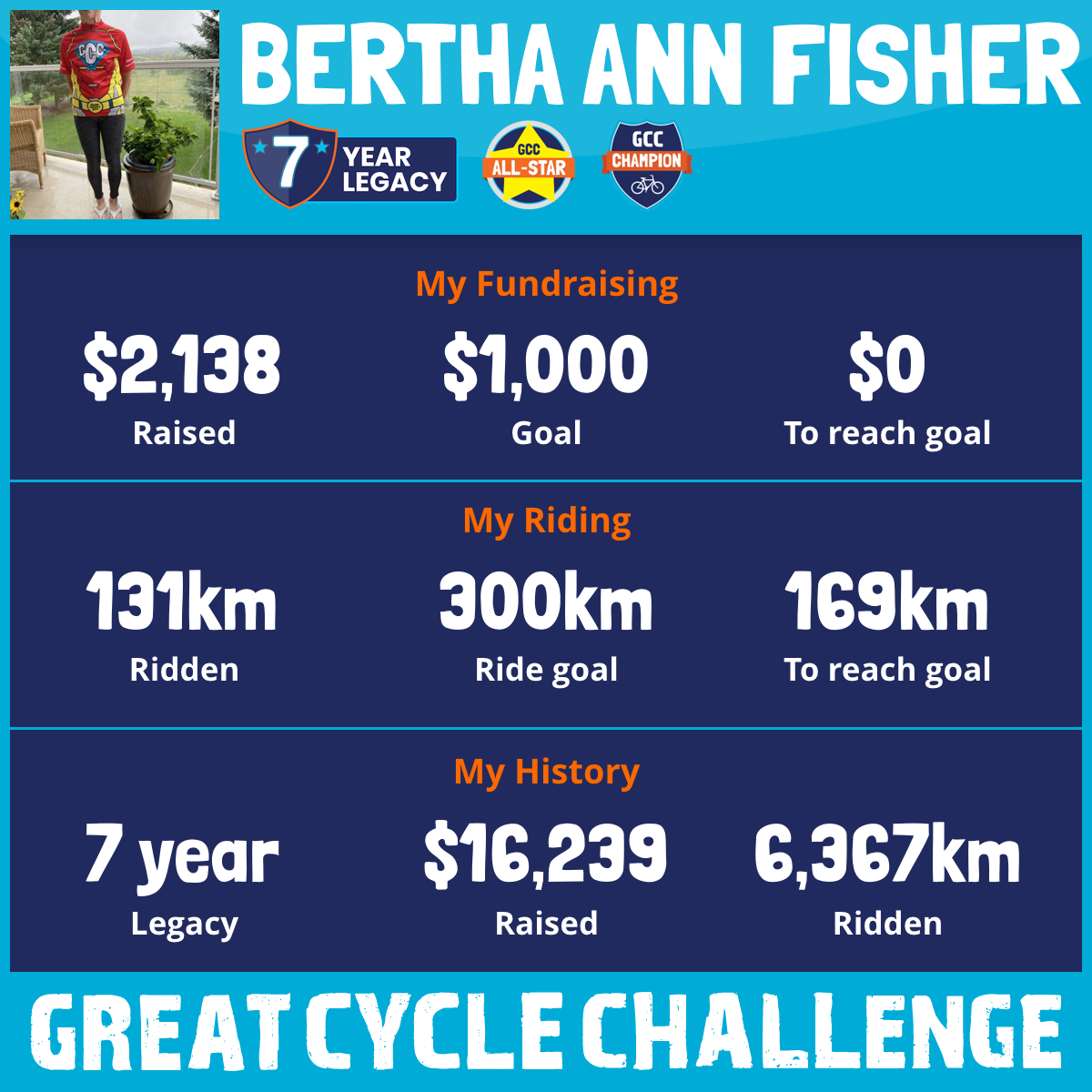 1,019 km Ridden$2,122 Raised2022