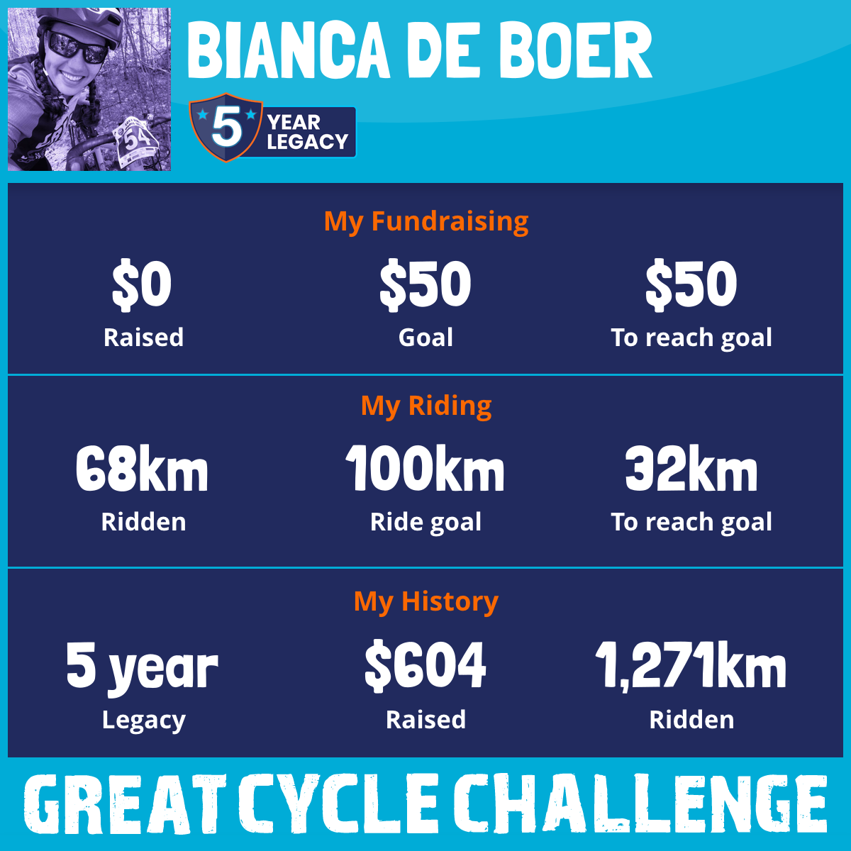I am riding 100 km in memory of Melissa. Please sponsor me and support my challenge to fight kids' cancer and save little lives.
