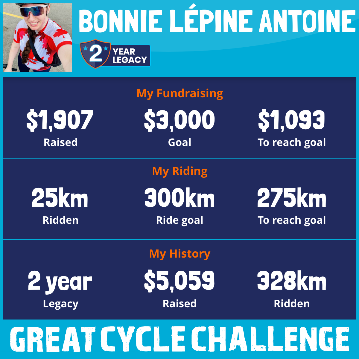 300 km Ridden$5,945 Raised2026