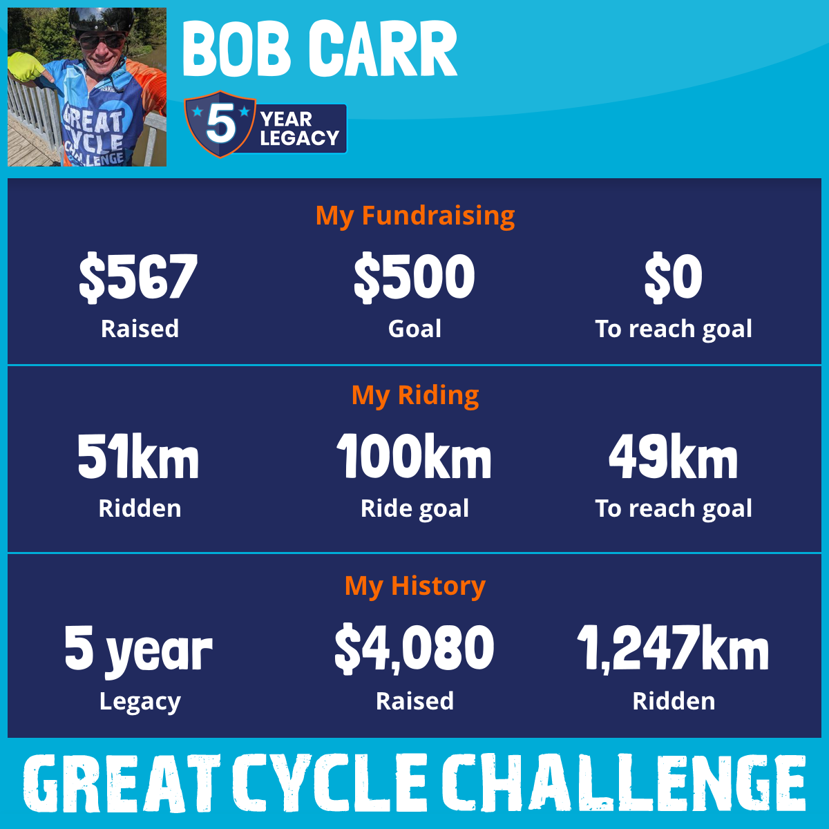 223 km Ridden$765 Raised2023