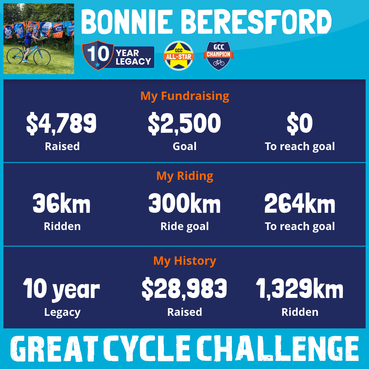 110 km Ridden$3,844 Raised2023
