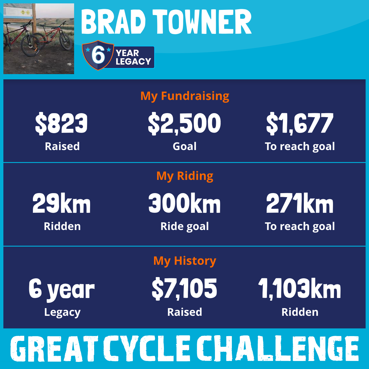 145 km Ridden$1,128 Raised2023