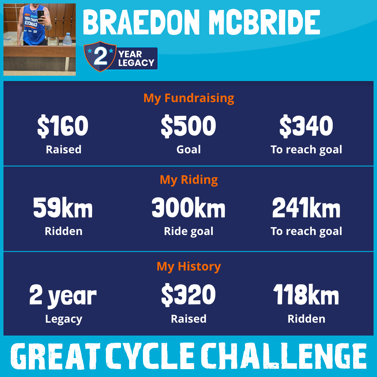 59 km Ridden$160 Raised2026