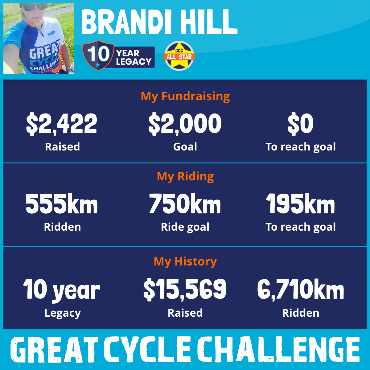 603 km Ridden$2,520 Raised2021