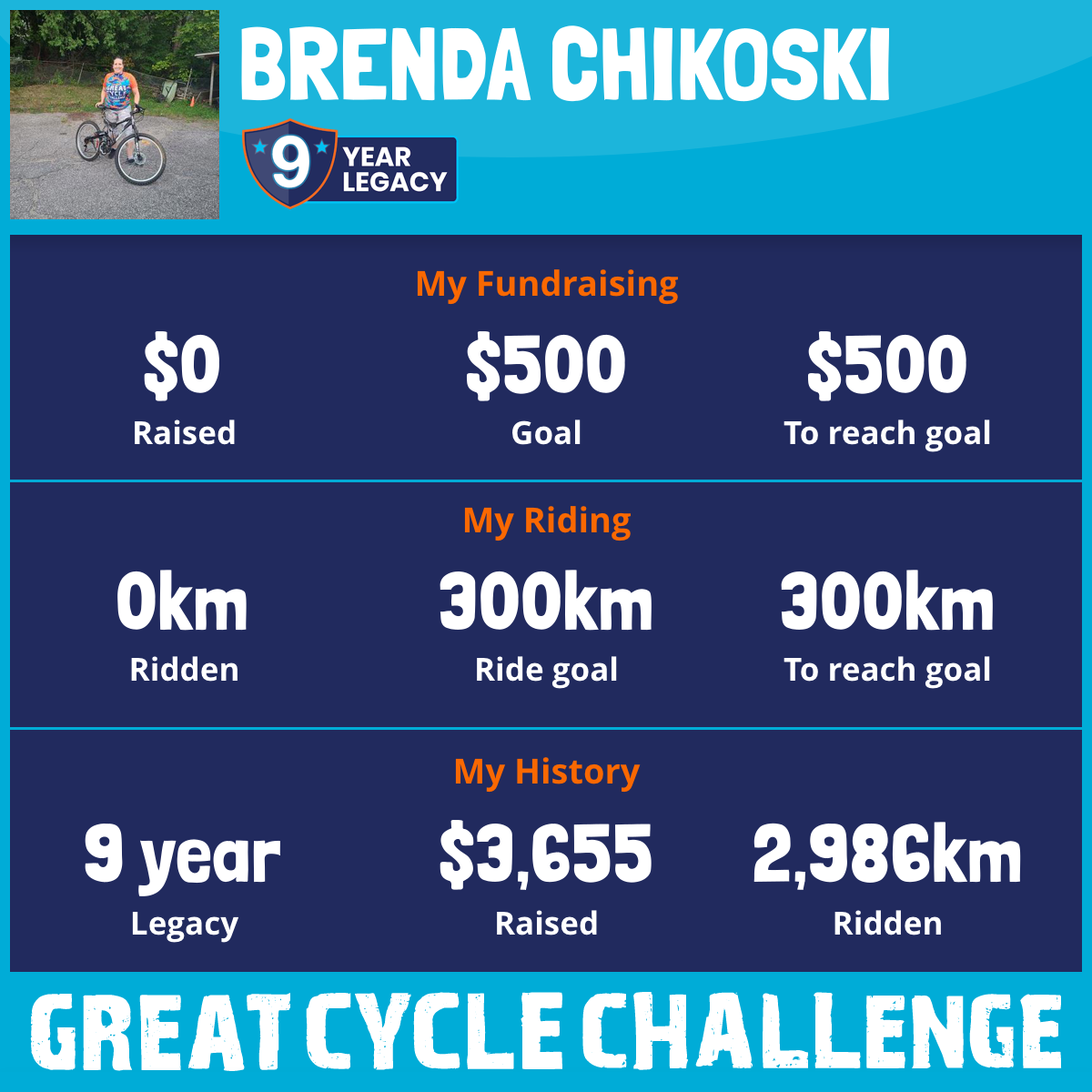 300 km Ridden$114 Raised2023