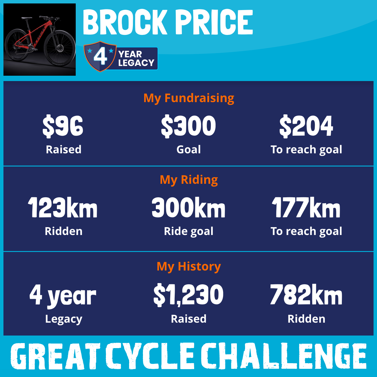 30 Aug 2025With one day left in the challenge, I've hit my 300km mark, and $300 fundraising goal. As a team, we've hit nearly $1500 in donations, and biked over 460km.
