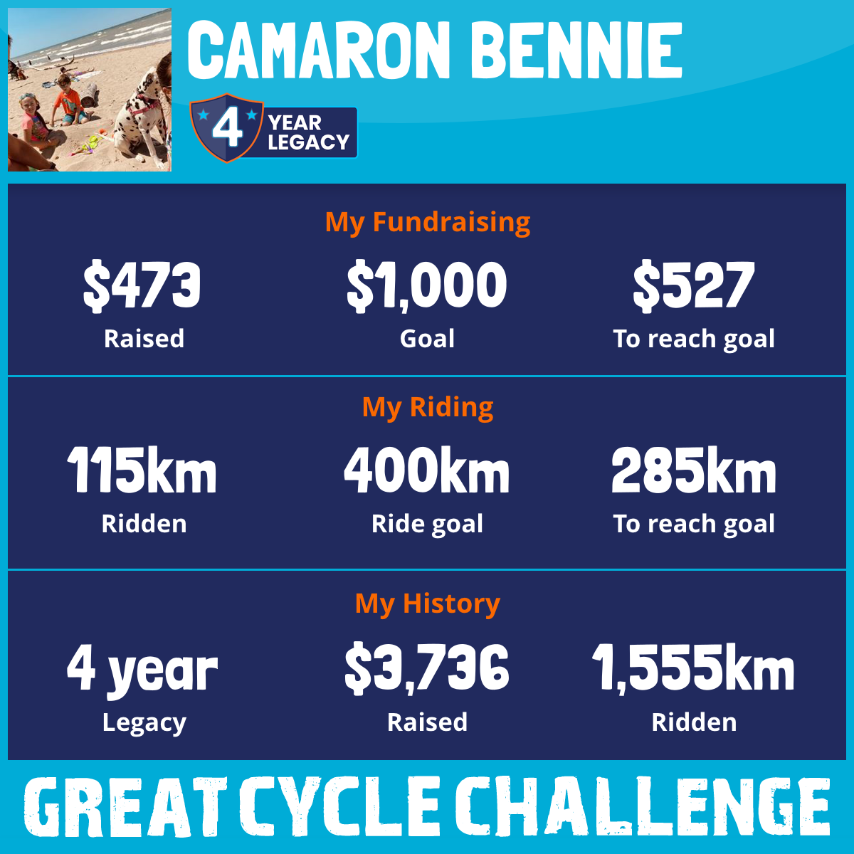 This August, I am taking part in the Great Cycle Challenge to fight kids' cancer!
