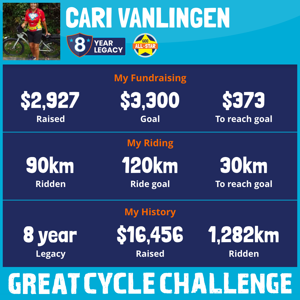This August, I am taking part in the Great Cycle Challenge to fight kids' cancer! This is the 16th year anniversary of when our daughter was diagnosed with cancer and went through that horrific ordeal. If she could go through that I can certainly go through riding 150 km to help raise funds for childhood cancer.
