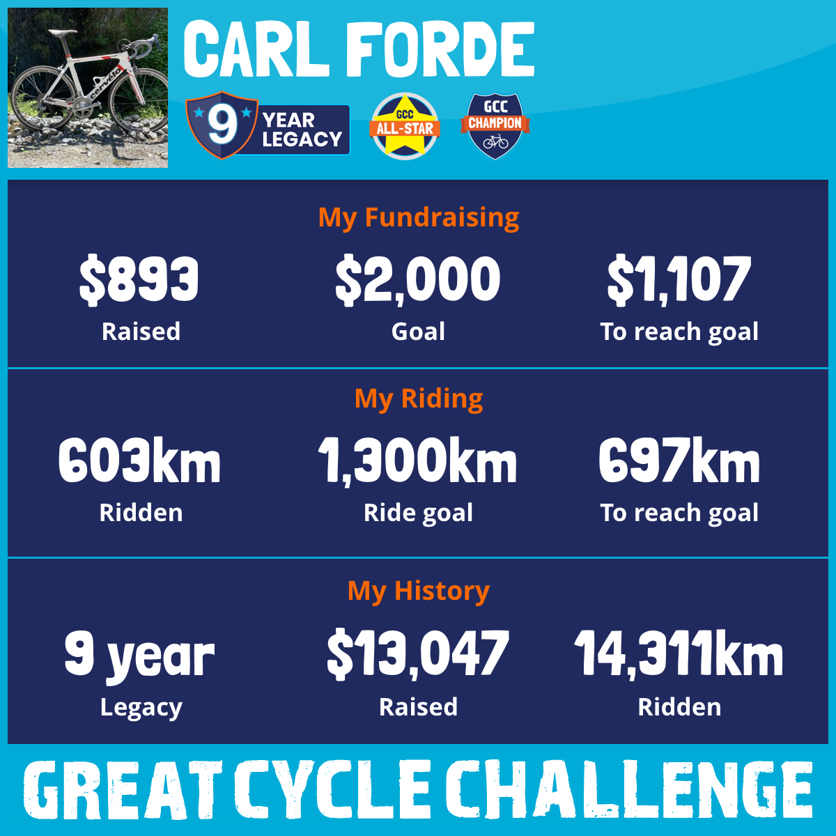 I am riding 1,300 km in memory of Aunty Marg. Please sponsor me and support my challenge to fight kids' cancer and save little lives.