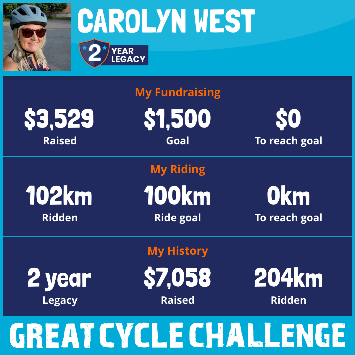 102 km Ridden$3,529 Raised2025